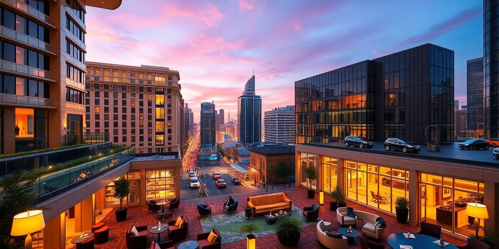 Luxury hotels in downtown areas offer amazing services, great locations, and beautiful views. They often have fancy restaurants, spas, and unique designs that make your stay unforgettable.